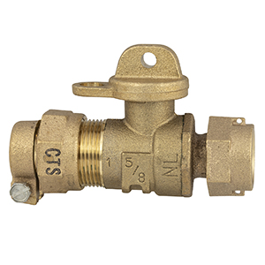 5/8" BALL VALVE, PAD WING - NO LEAD 3/4" CTS PACK JOINT by 5/8" METER SWIVEL NUT |