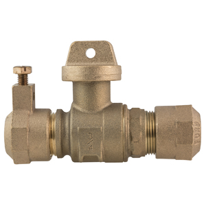 3/4" BALL VALVE - NO LEAD WITH TRACER WIRE HOLES, SMALL END 1" CTS QUICK JOINT by 3/4" CTS QUICK JOINT |