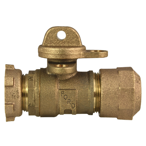 5/8" YOKE BALL VALVE, PAD WING - NO LEAD WITH 360 DEG. TEE HEAD ROTATION 5/8"x3/4" & 3/4" METER YOKE NOSE by 3/4" CTS QUICK JOINT |