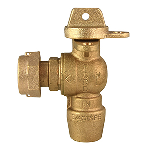 3/4" ANGLE BALL VALVE, PW - NO LEAD 3/4" CTS PE ULTRA - TITE by 5/8"x3/4" & 3/4" METER SWIVEL NUT |