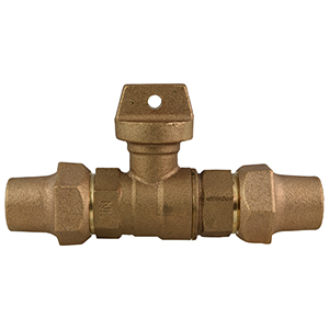 5/8" BALL VALVE, HEAVY TEE HEAD-NO LEAD WITH 360 DEG. TEE HEAD ROTATION 3/4" FLARE COPPER by 3/4" FLARE COPPER |