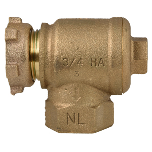 3/4" ANGLE CHECK VALVE - NO LEAD 5/8" METER YOKE NOSE by 3/4" FEMALE IRON PIPE THREAD |
