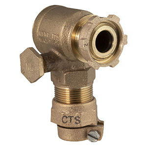 3/4" ANGLE CHECK VALVE - NO LEAD WITH DRAIN/TEST VALVE 5/8" METER YOKE NOSE by 3/4" CTS PACK JOINT |