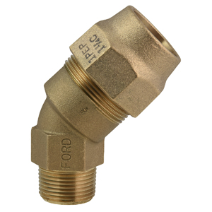 ELL, 45 DEG. - NO LEAD 1" MALE IRON PIPE THREAD by 1" PE PIPE GRIP JOINT |
