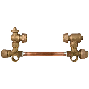 5/8"x3/4" METER LINESETTER - NO LEAD 3/4" BALL VALVE, 3/4" CHECK VALVE 3/4" CTS PQ by 3/4" DBL PURPOSE OUTLET WITH BRACE EYE |