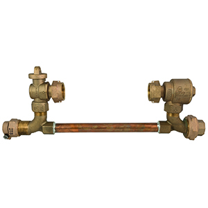 5/8"x3/4" METER LINESETTER - NO LEAD 3/4" BALL VALVE, 3/4" DUAL CHK VALVE 3/4" CTS PACK JOINT by 3/4" DOUBLE PURPOSE OUTLET |