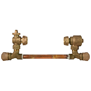 5/8"x3/4" METER LINESETTER - NO LEAD 3/4" BALL VALVE, 3/4" DUAL CHK VALVE 3/4" CTS QUICK JOINT by 3/4" CTS QUICK JOINT OUTLET |