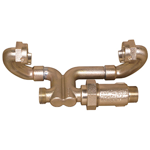 5/8"x3/4" RETRO Z SETTER - NO LEAD C STYLE, 3" HIGH, 3/4" MALE MTR THD SERV LESS BAR TAP, PLAIN ELL INLET by 3/4" STR. CART. DUAL CHECK VAL OUTLET |