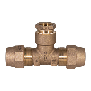 TEE, AWT - NO LEAD 1" CTS GRIP JOINT by 1" CTS GRIP JOINT RUN by 3/4" FEMALE IRON PIPE - SIDE OUTLET |