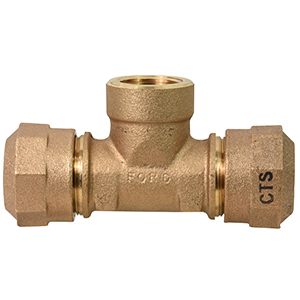TEE - NO LEAD 1" CTS QUICK JOINT by 1" CTS QUICK JOINT by 1" FEMALE IRON PIPE THREAD - SIDE OUTLET |