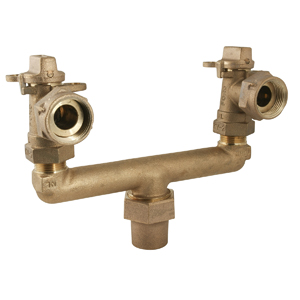 BRANCH VALVE ASSY, 7-1/2" LONG - NO LEAD ONE 3/4" FLARE COPPER by TWO 3/4" KEY VALVES TWO 5/8"x3/4" & 3/4" METER SWIVEL NUTS |
