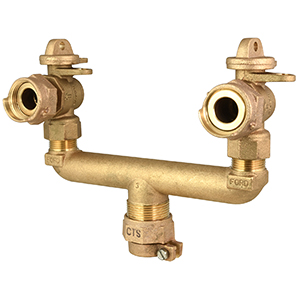 BRANCH VALVE ASSY, 7-1/2" LONG - NO LEAD ONE 1" CTS PACK JOINT by TWO 5/8" ANGLE BALL VALVES TWO 5/8"x3/4" & 3/4" MTR SWVL SADDLE NUT |