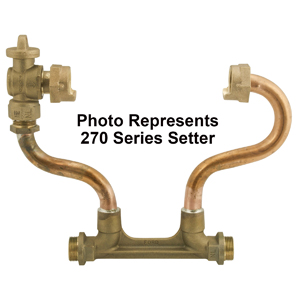 5/8" METER COPPERSETTER - NO LEAD 5/8"x3/4" BALL VALVE by PLAIN TUBE 7" HIGH, HZ INLET, HZ OUTLET 3/4" MALE KORNERHORN OUTLETS |
