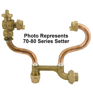 5/8"x3/4" METER COPPERSETTER - NO LEAD 5/8"x3/4" BALL VALVE by PLAIN TUBE 7" HIGH, VT INLET, HZ OUTLET 1" CTS PJ by 1" DBL PURPOSE |