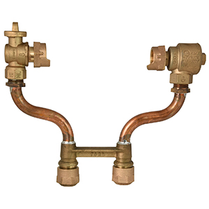 5/8"x3/4" METER COPPERSETTER - NO LEAD 5/8"x3/4" BALL VALVE by DUAL CHECK VALVE 7" HIGH, VT INLET, VT OUTLET 3/4" CTS QUICK J. by 3/4" CTS QUICK J. |