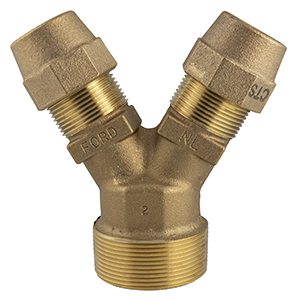 Y BRANCH - NO LEAD ONE 2" MALE IRON PIPE THREAD by TWO 1" CTS GRIP JOINT 2 BRANCH |